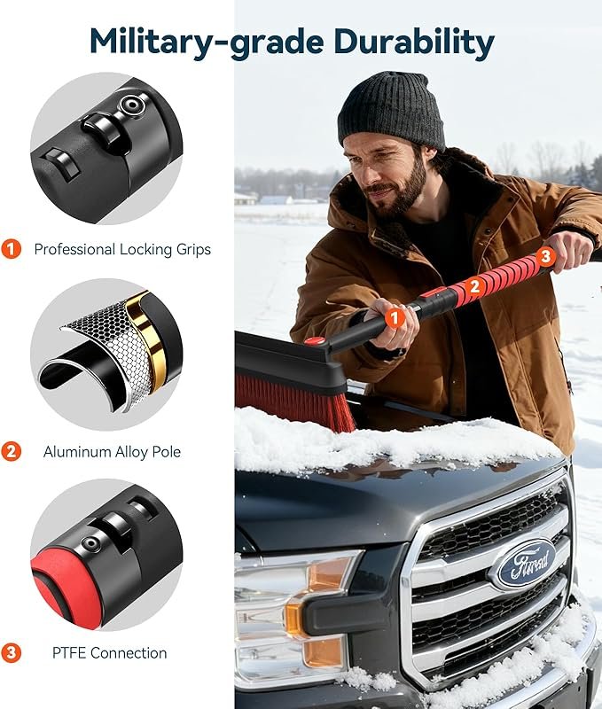 • Snow Brush: Thick bristles remove snow efficiently without scratching paint